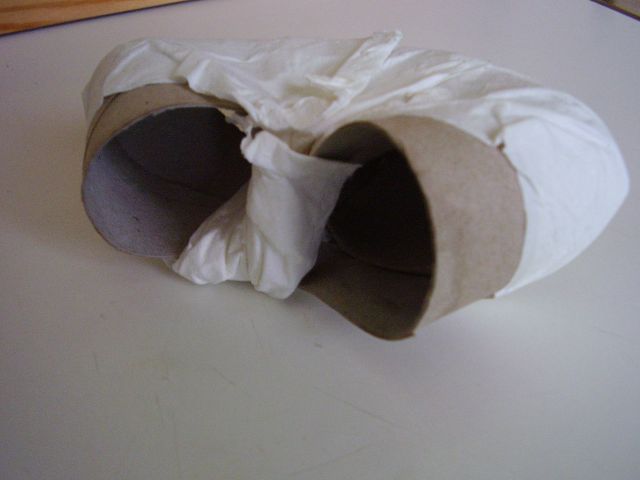 Na spájanie jednotlivých vyrezaných dielov budeme potrebovať samotné papierové utierky. Nepoužívame žiadne lepidlá ani lepiace pásky. Škrečok určite časom labyrint rozhryzie a nechceme, aby si pritom zalepil papuľku, ani aby zjedol kúsky lepidla, ktoré je zväčša z agresívnych chemických látok.